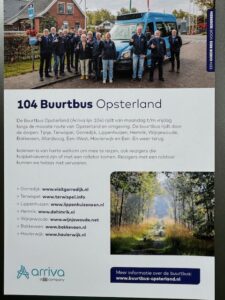 Buurtbus Opsterland rijdt van maandag t/m vrijdag volgens de dienstregeling van lijn 104 van Arriva.