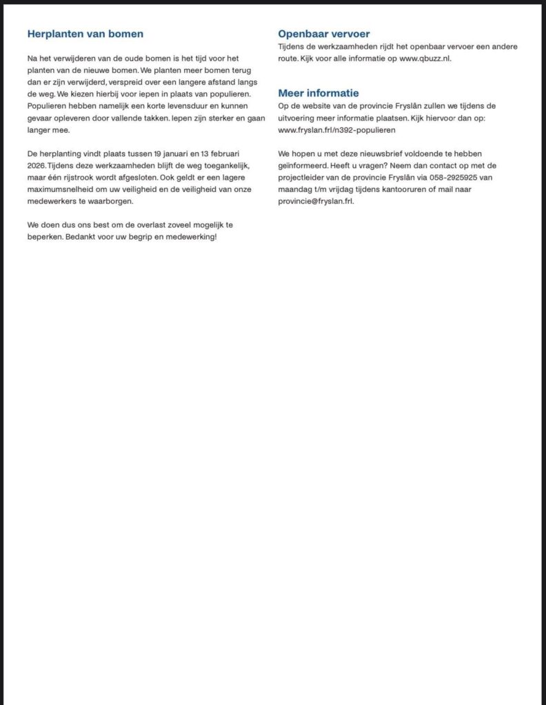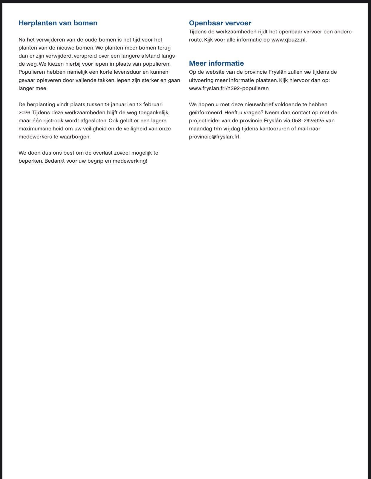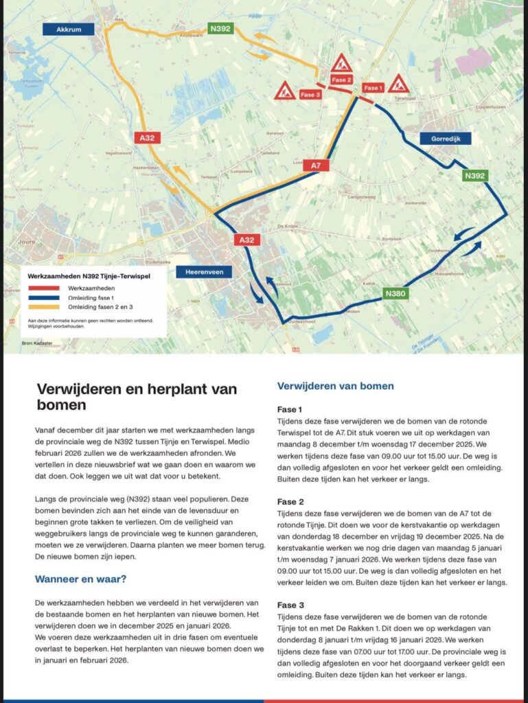 Werkzaamheden N392 Tijnje – Terwispel Terwispel Geplaatst op 18 oktober 2025 door Yme Jan Van der Draai18 oktober 2025 Share this… Twitter Facebook Whatsapp